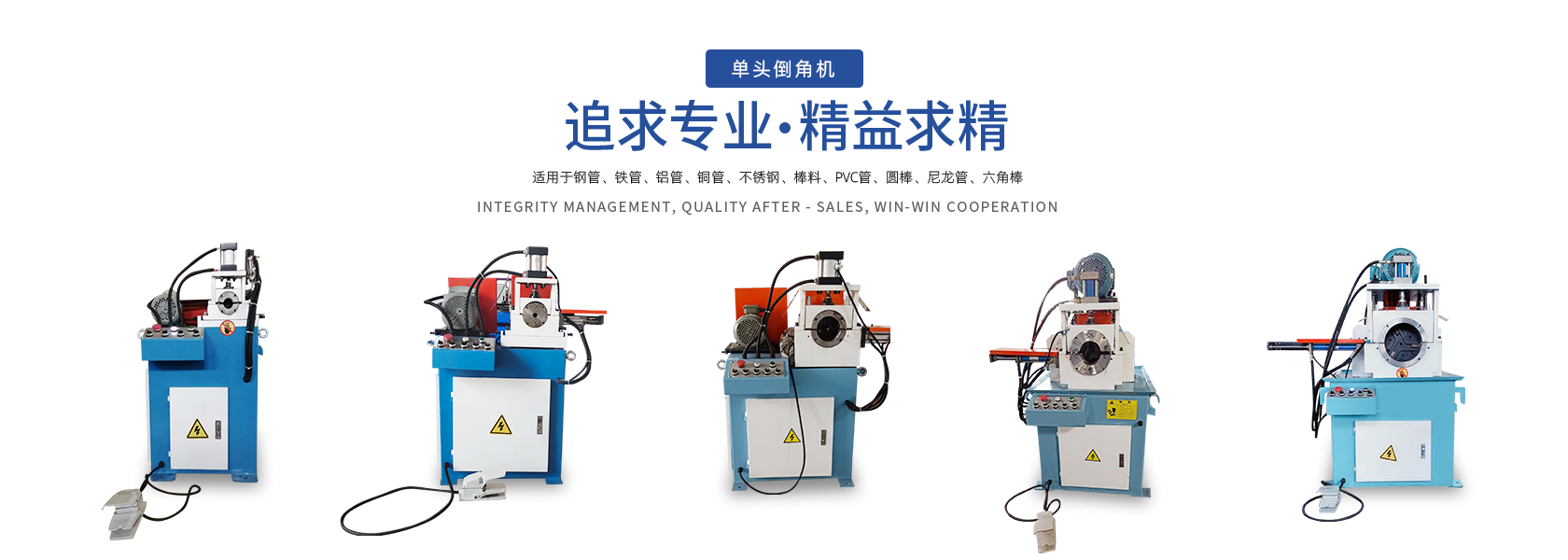 公司目前專注于研發(fā)、制造、生產(chǎn)各類優(yōu)質(zhì)全自動(dòng)倒角機(jī),現(xiàn)開發(fā)生產(chǎn)的主要產(chǎn)品有:精密雙頭倒角機(jī)、氣動(dòng)雙頭倒角機(jī)、液壓雙頭倒角機(jī)、金屬圓管圓棒倒角機(jī)、端面加工倒角機(jī)以及單頭液壓倒角機(jī)等等。為汽車、摩托車、體育健身器材、鋼管家具、旅游休閑用品、水暖衛(wèi)浴等行業(yè)的金屬管制品的加工提供了完美的機(jī)械設(shè)備。